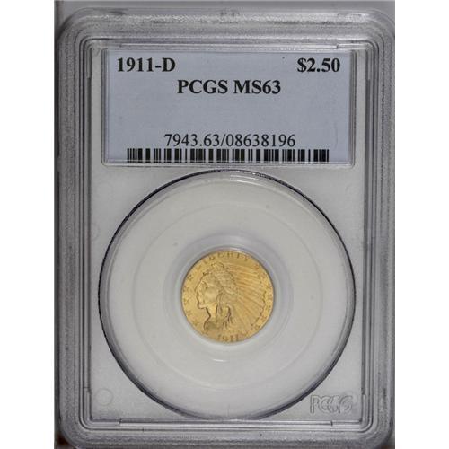 1911-D $2 1/2 MS63 PCGS. Only 55,600 pieces were struc