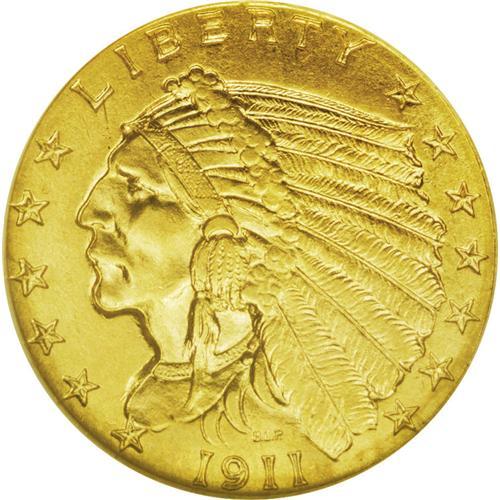 <B>1911-D<$2 1/2> MS64 NGC.</B></I> An important example of this, the rarest quarter eagle struck in the 20th century, to the extent of only 55,600 pieces. Although many of the issue were struck with a weak mintmark--so much so that sometimes other die diagnostics must be used to verify authenticity--the present example has a bold and prominent mintmark. The satiny surfaces are a delectable honey-gold, with tinges of hazel. The surface preservation is head and shoulders above most coins of this type, of any date. The series' incuse design ensured that the fields, in higher relief on the coins than are the devices, would be subjected to much more than their normal share of abrasions, scratches, ticks, and various other surface insults. Not so the present piece, which is nearly free of abrasions in the prime focal points before the Indian's face, on his cheek, and above the eagle on the reverse. The strike is bold, without notable weakness. Acquisition of this key-date coin would enable many collectors to complete one of the few U.S. gold series that could even be considered for completion.