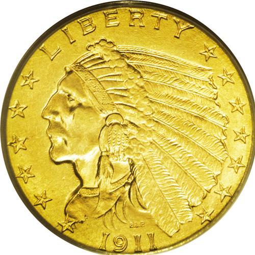 <B>1911-D<$2 1/2> MS64 PCGS.</B></I> This important key date example boasts an excellent strike, including a completely defined mintmark. Displaying fine satiny luster and intermingled lime-green and orange-rose color, the only slight distractions are a wispy pinscratch connecting the date's last number 1 to the Indian's bust, and a small contact mark on the cheekbone. The diagnostic wire rim on the upper right obverse is very faint, but can be discerned using magnification.<BR> The original mintage of 55,680 pieces is the lowest among all 20th century quarter eagles, and represents the Denver Mint's first delivery of that denomination. It is also the only Indian quarter eagle issue with a mintage of less than 100,000 pieces. This outstanding near-Gem representative, then, must be considered in the context of overall scarcity, which can be anticipated to a certain degree based upon mintage, but also requires an examination of survival in the better grades of Mint State. For the 1911-D, this survival rate is respectable but not spectacular by any means, as the issue was clearly not saved from circulation in great numbers. Thus, although several hundred pieces have attained the MS64 grade assessment, and are therefore somewhat attainable to the collecting public, far fewer examples are known at the Gem level of preservation or finer, making Gems and Premium Gems simply unaffordable, for most. Considering the paucity of higher-graded specimens, it seems likely that a fine near-Gem like this one should draw serious attention from any number of potential buyers.