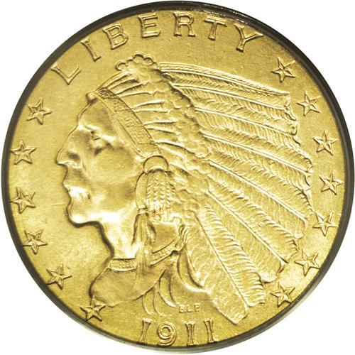 <B>1911-D<$2 1/2> MS64 PCGS.</B></I> This is a delightful example of the key-date Indian Head quarter eagle, the one coin most often encountered on collector's want lists of the series. It is a date that is rarely encountered in full Gem Mint State preservation, thus near-Gems like this example are in high demand. This example, characterized by a bold D mintmark, has rich and highly lustrous yellow-gold surfaces and sharp design details. Both sides have frosty luster and are free of all by the smallest surface marks. It is highly attractive and most desirable.