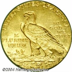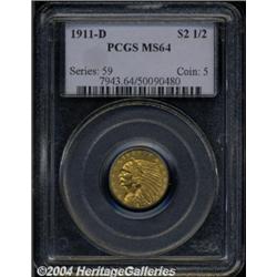 <B>1911-D<$2 1/2> MS64 PCGS.</B></I> An absolutely stunning Gem '11-D Quarter Eagle, with intense, satiny luster and a substantial amount of rose-orange patina in the fields. The overall strike is very well executed, with crisp definition over all features, even the all-important D mintmark, and the diagnostic knife-like rim on the upper right obverse is quite distinct even within the holder. The 55,680 Quarter Eagles struck in 1911 represent the Denver Mint's first delivery of that denomination. <BR><BR><B>Important notice:</B> Heritage usually auctions material at the rate of 200-250 lots per hour. On some occasions eBay Live bid software or the Internet may not be able to keep up with the pace of the auction. We recommend placing a realistic absentee bid now as insurance to avoid disappointment. Occasionally the auctioneer may eliminate or reject an eBay Live bid, and the auctioneer may also reopen a lot after the close of the eBay live bidding (usually because we missed an audience bid), and may reject your bid even if it shows you as the winning bidder. By bidding via eBay Live, you agree that Heritage may award the lot to another bidder at its sole discretion under the circumstances described above or any other reasonable circumstances. Since eBay bids are not shown to us until we open the lot on the floor, we treat those bids just like floor bids. In most cases the floor responds before the eBay bid is presented to us, due to Internet lag time, so for consistency we have made it a policy that floor bids are always considered first over tie eBay live bids. Also please note that all Heritage lots purchased through eBay Live carry a 20% Buyer's Premium. Please make sure you read the Terms and Conditions before you bid. </span></font></tr></table></td></tr></table>