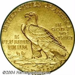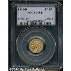 <B>1911-D<$2 1/2> MS64 PCGS.</B></I> The '11-D is the key-date to the Indian quarter eagle series, and is elusive in all grades. Choice Mint State coins are infrequently seen, and you can forget about Gems as they are almost non-existent. This example is very sharply struck, and the mintmark is as bold as we have ever seen! The vast majority of examples have a nearly invisible mintmark, so the bold mintmark is an extremely important consideration. Everyone who specializes in this series is aware of the rarity and importance of this issue in Choice Mint State condition. The surfaces have the typical slightly granular appearance of all genuine 1911-D quarter eagles, with frosty orange-gold luster and excellent eye appeal. <BR><BR><B>Important notice:</B> Heritage usually auctions material at the rate of 200-250 lots per hour. On some occasions eBay Live bid software or the Internet may not be able to keep up with the pace of the auction. We recommend placing a realistic absentee bid now as insurance to avoid disappointment. Occasionally the auctioneer may eliminate or reject an eBay Live bid, and the auctioneer may also reopen a lot after the close of the eBay live bidding (usually because we missed an audience bid), and may reject your bid even if it shows you as the winning bidder. By bidding via eBay Live, you agree that Heritage may award the lot to another bidder at its sole discretion under the circumstances described above or any other reasonable circumstances. Since eBay bids are not shown to us until we open the lot on the floor, we treat those bids just like floor bids. In most cases the floor responds before the eBay bid is presented to us, due to Internet lag time, so for consistency we have made it a policy that floor bids are always considered first over tie eBay live bids. Also please note that all Heritage lots purchased through eBay Live carry a 20% Buyer's Premium. Please make sure you read the Terms and Conditions before you bid. </span></font></tr></table></td></tr></table>