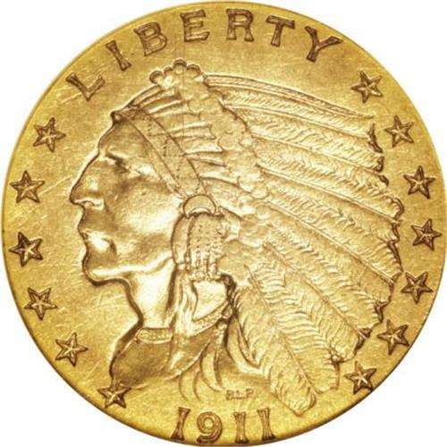 <B>1911-D $2 1/2 Weak D AU53 NGC.</B></I> The outlines of the D mintmark are barely distinguishable and, of course, of tantamount importance to collectors as the key date of the series. Further confirmation is provided by the wire rim always seen on the right obverse. Both sides show considerable luster, with brownish-gold highlights.<BR><BR><B>Coin Engraver:</B> Bela Lyon Pratt<BR><BR><b>Shipping:</b> Coins & Currency (<a target="_blank" href="http://www.heritageauctions.com/common/shipping.php">view shipping information</a>)