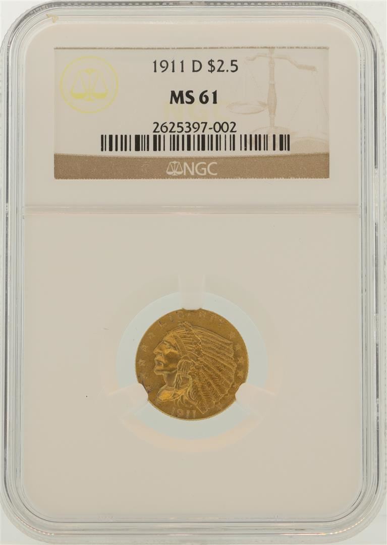 One 1911-D $2.5 Indian Head Quarter Eagle Gold Coin. NGC certified.