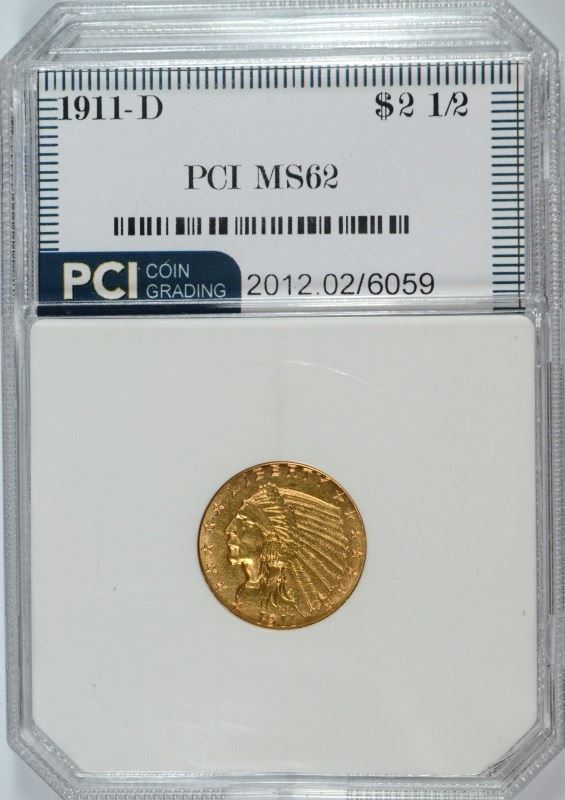 1911-D $2.50 GOLD INDIAN, PCI MS-62  KEY DATE!! GREY SHEET BID IS $10,000.00