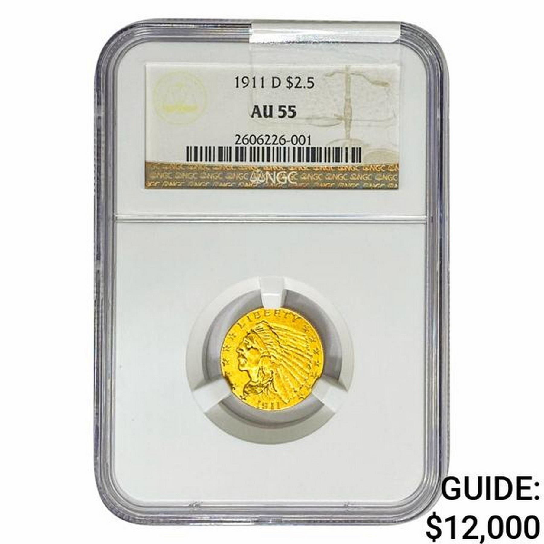 1911-D $2.50 Gold Quarter Eagle NGC AU55