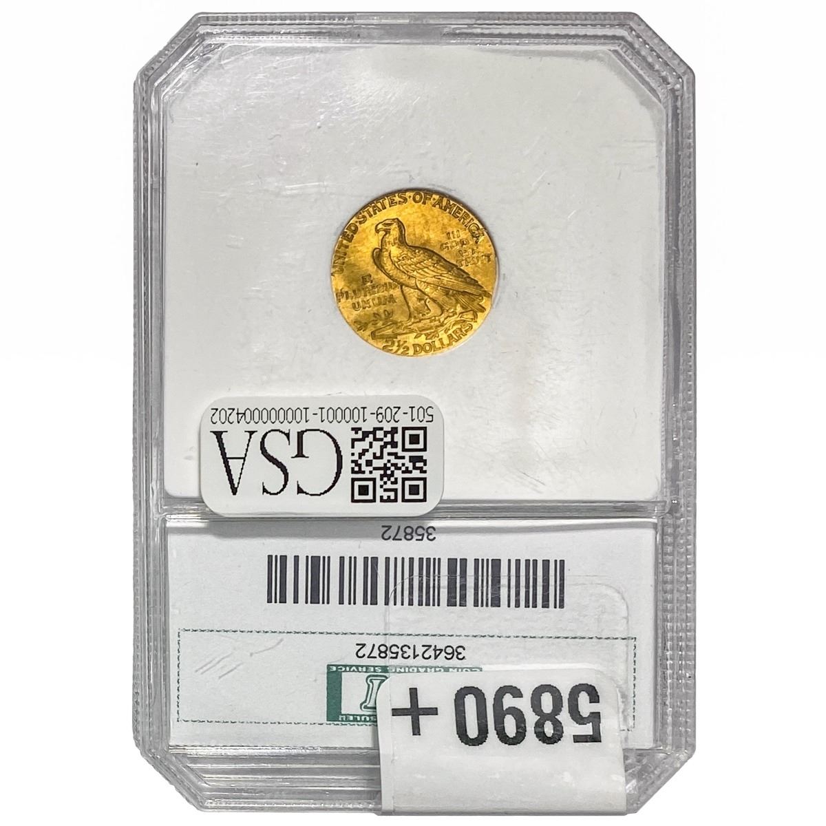 l. All non-certified coins and currency are guaranteed genuine, but are not guaranteed as to grade, since grading is a matter of opinion, an art and not a science, and therefore the description rendered by GSA or any third-party grading service may not agree with the opinion of others (including trained experts), and the same expert may not grade the same item with the same grade at two different times. GSA may, but is not obligated to, express an opinion as to non-certified numismatic items, in GSA’s opinion, or by its employees’ experience and the current interpretation of the American Numismatic Association’s standards as of the date the catalog was prepared. There is no guarantee or warranty expressed or implied that the grading opinions utilized by GSA, if any, will meet the standards of any grading service at any time in the future.