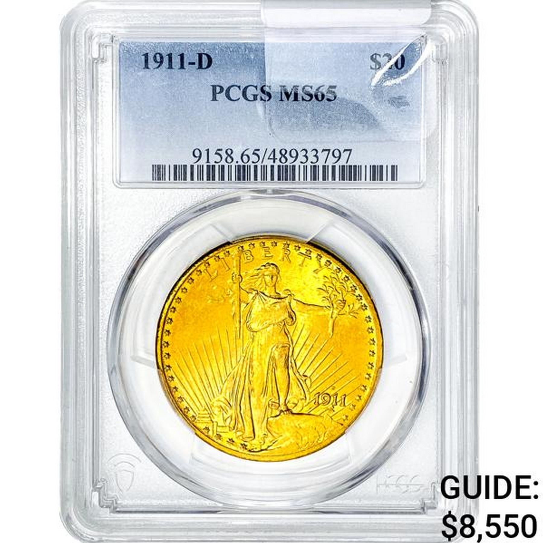 1911-D $20 Gold Double Eagle PCGS MS65