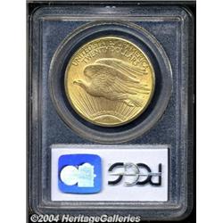 <B>1911-D<$20> MS62 PCGS.</B></I> The otherwise honey-gold surfaces reveal blushes of medium intensity reddish-gold tinting in a few areas in and around the central obverse. None of the grade-defining abrasions are worthy of individual concern, and the strike is sufficiently strong throughout. <BR><BR><B>Important notice:</B> Heritage usually auctions material at the rate of 200-250 lots per hour. On some occasions eBay Live bid software or the Internet may not be able to keep up with the pace of the auction. We recommend placing a realistic absentee bid now as insurance to avoid disappointment. Occasionally the auctioneer may eliminate or reject an eBay Live bid, and the auctioneer may also reopen a lot after the close of the eBay live bidding (usually because we missed an audience bid), and may reject your bid even if it shows you as the winning bidder. By bidding via eBay Live, you agree that Heritage may award the lot to another bidder at its sole discretion under the circumstances described above or any other reasonable circumstances. Since eBay bids are not shown to us until we open the lot on the floor, we treat those bids just like floor bids. In most cases the floor responds before the eBay bid is presented to us, due to Internet lag time, so for consistency we have made it a policy that floor bids are always considered first over tie eBay live bids. Also please note that all Heritage lots purchased through eBay Live carry a 20% Buyer's Premium. Please make sure you read the Terms and Conditions before you bid.
