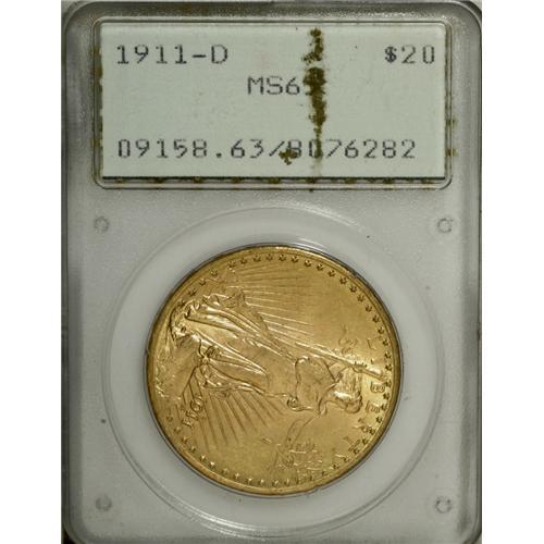 1911-D $20 MS63 PCGS. PCGS Population (2143/4298). NGC
