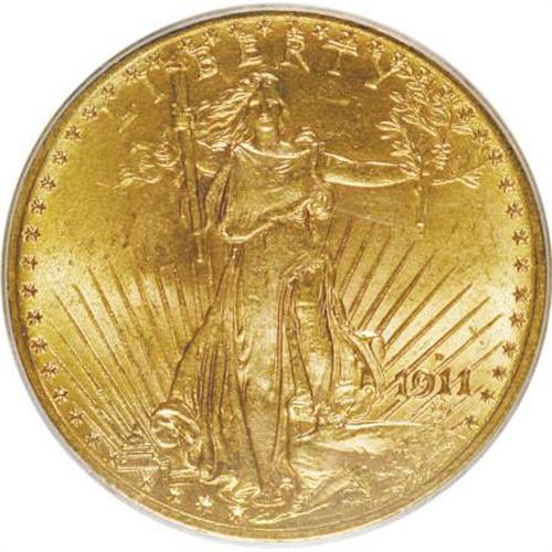 <B>1911-D $20 MS64 PCGS.</B></I> PCGS Population (2589/1884). NGC Census: (3049/2200). Mintage: 846,500. Numismedia Wsl. Price for NGC/PCGS coin in MS64: $840. (#9158)<BR><BR><B>Coin Engraver:</B> Augustus Saint-Gaudens<BR><BR><b>Shipping:</b> Coins & Currency (<a target="_blank" href="http://www.heritageauctions.com/common/shipping.php">view shipping information</a>)