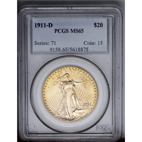 1911-D $20 MS65 PCGS. A glorious Gem that is lustrous,
