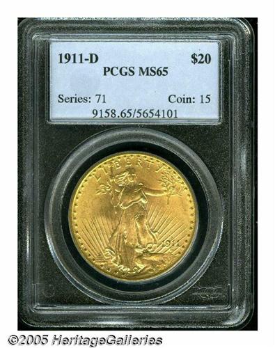 1911-D $20 MS65 PCGS. Breen-7383, "Rare." The min