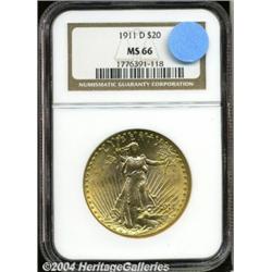 <B>1911-D<$20> MS66 NGC.</B></I> Matte-like surfaces emit a vibrant luster overlain by apricot-gold patina. Sharply struck and minimally abraded. A very attractive double eagle.<BR><I>From The Sarasota Collection.</B></I> <BR><BR><B>Important notice:</B> Heritage usually auctions material at the rate of 200-250 lots per hour. On some occasions eBay Live bid software or the Internet may not be able to keep up with the pace of the auction. We recommend placing a realistic absentee bid now as insurance to avoid disappointment. Occasionally the auctioneer may eliminate or reject an eBay Live bid, and the auctioneer may also reopen a lot after the close of the eBay live bidding (usually because we missed an audience bid), and may reject your bid even if it shows you as the winning bidder. By bidding via eBay Live, you agree that Heritage may award the lot to another bidder at its sole discretion under the circumstances described above or any other reasonable circumstances. Since eBay bids are not shown to us until we open the lot on the floor, we treat those bids just like floor bids. In most cases the floor responds before the eBay bid is presented to us, due to Internet lag time, so for consistency we have made it a policy that floor bids are always considered first over tie eBay live bids. Also please note that all Heritage lots purchased through eBay Live carry a 20% Buyer's Premium. Please make sure you read the Terms and Conditions before you bid. </span></font></tr></table></td></tr></table>