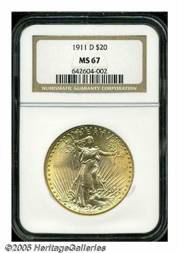 1911-D $20 MS67 NGC. After the 1908 No Motto, the