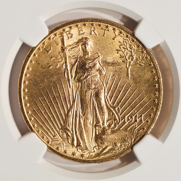 One 1911-D $20 St Gaudens Double Eagle Gold Coin NGC MS64.