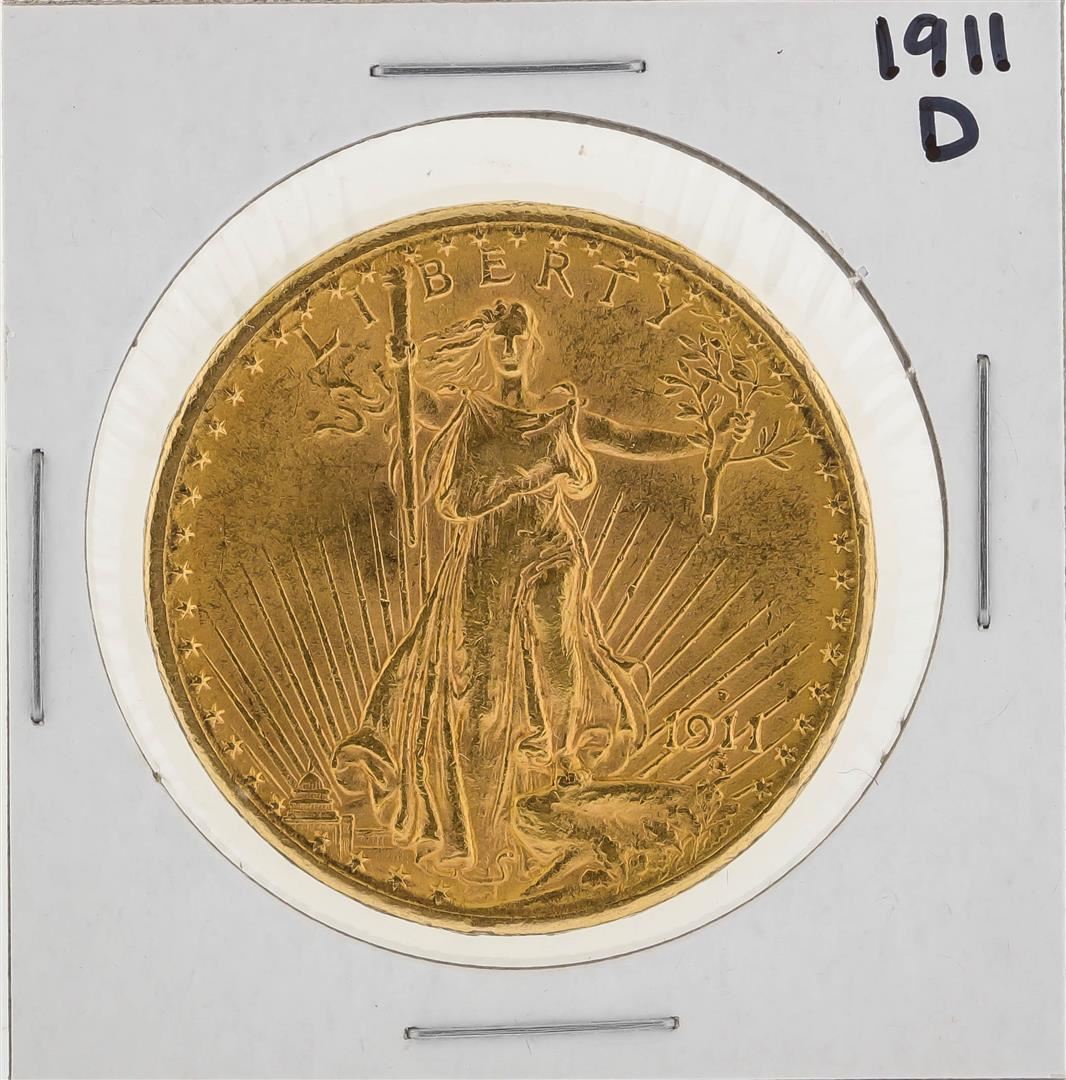 One 1911-D $20 St. Gaudens Double Eagle Gold Coin.