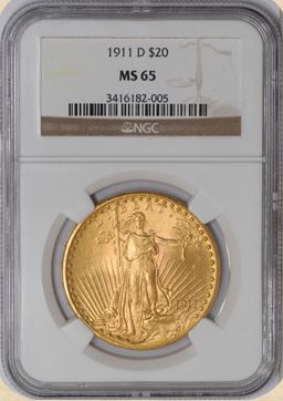 1911-D $20 St. Gaudens MS65 NGC