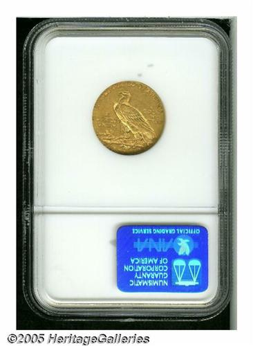<B>1911-D<$5> AU58 NGC.</B></I> The 1911-D, with a mintage of 72,500 pieces, is relatively scarce in any condition. Most known specimens are in the VF to XF range. The high-end AU we offer in this lot displays relatively bright peach-gold surfaces with decent residual luster. The design elements are well struck, though the eagle's left shoulder is soft. Aside from a few minor handling marks, the surfaces are quite clean.<BR><I>From The Dr. Theodore Almquist Collection.</B></I>
