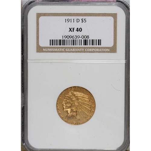 1911-D $5 XF40 NGC. NGC Census: (11/738). PCGS Pop