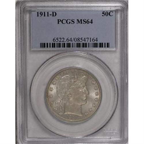 <B>1911-D 50C MS64 PCGS.</B></I> Well-defined with slightly hazy silver-gray toning over the satiny, strongly lustrous surfaces. An attractive near-Gem that shows occasional whispers of gold near the portrait. Population: 25 in 64, 31 finer (3/08).<BR><BR><B>Coin Engraver:</B> Charles E. Barber<BR><BR><b>Shipping:</b> Coins & Currency (<a target="_blank" href="http://www.heritageauctions.com/common/shipping.php">view shipping information</a>)
