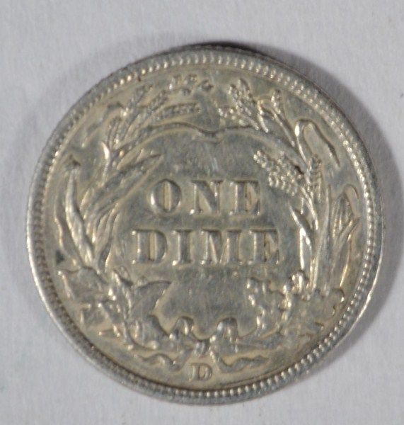 LIGHT TONING ON OBVERSE OF THIS NICE DIME, ESTIMATE $35.00 TO $40.00