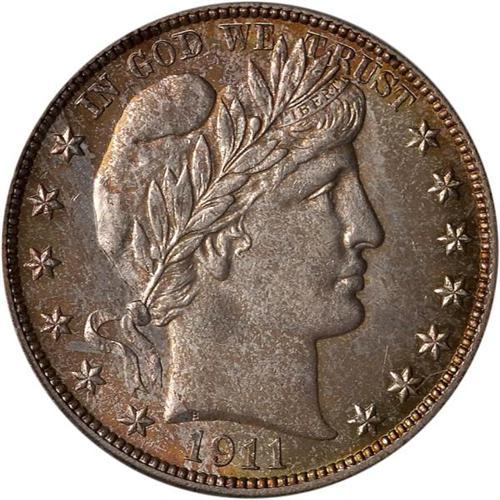 <b>1911-D Barber Half Dollar. PCGS graded MS64.</b> Lightly toned. A well struck example of this Denver mint date whose swirling luster is complete on both sides <b>(PCGS # 6522)</b> <i>