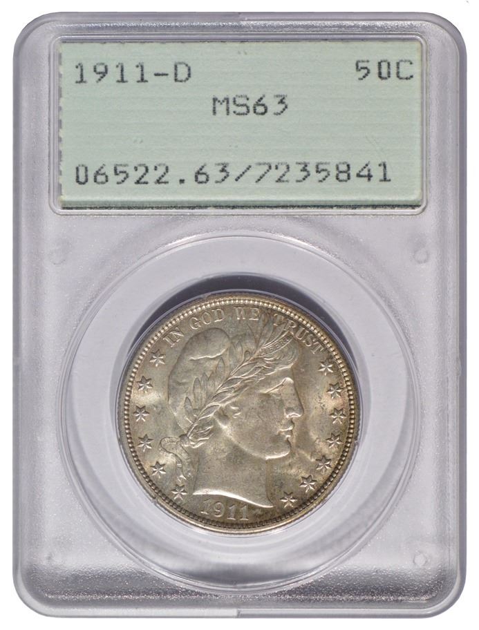 One 1911-D Barber Half Dollar Coin PCGS MS63.