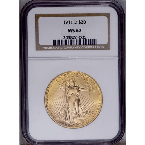 1911-D/D $20 MS67 NGC. After the 1908 No Motto, the 19