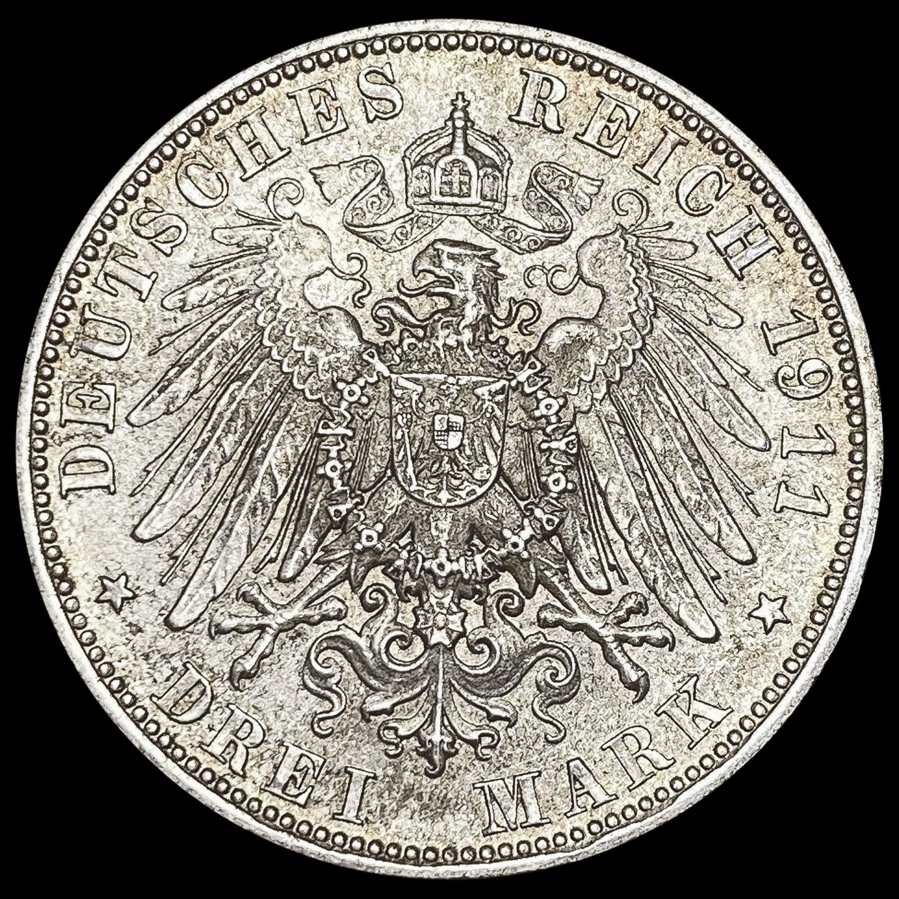 1911-D Germany Bavaria 3 Mark UNCIRCULATED