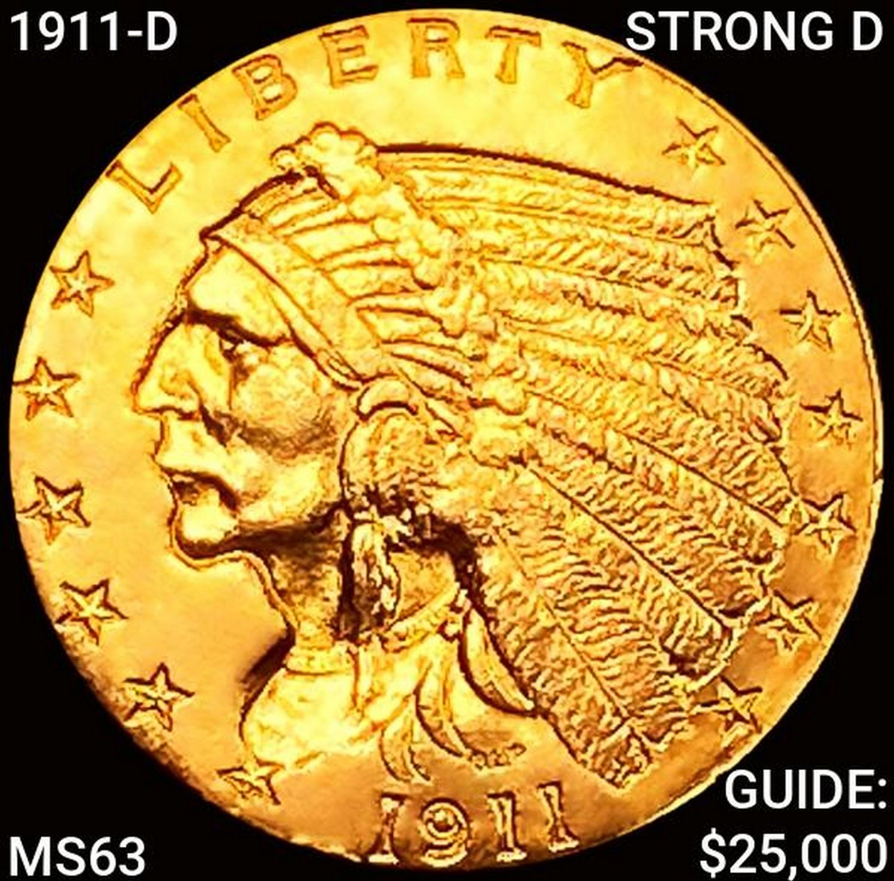 1911-D STRONG D $2.50 Gold Quarter Eagle CHOICE BU