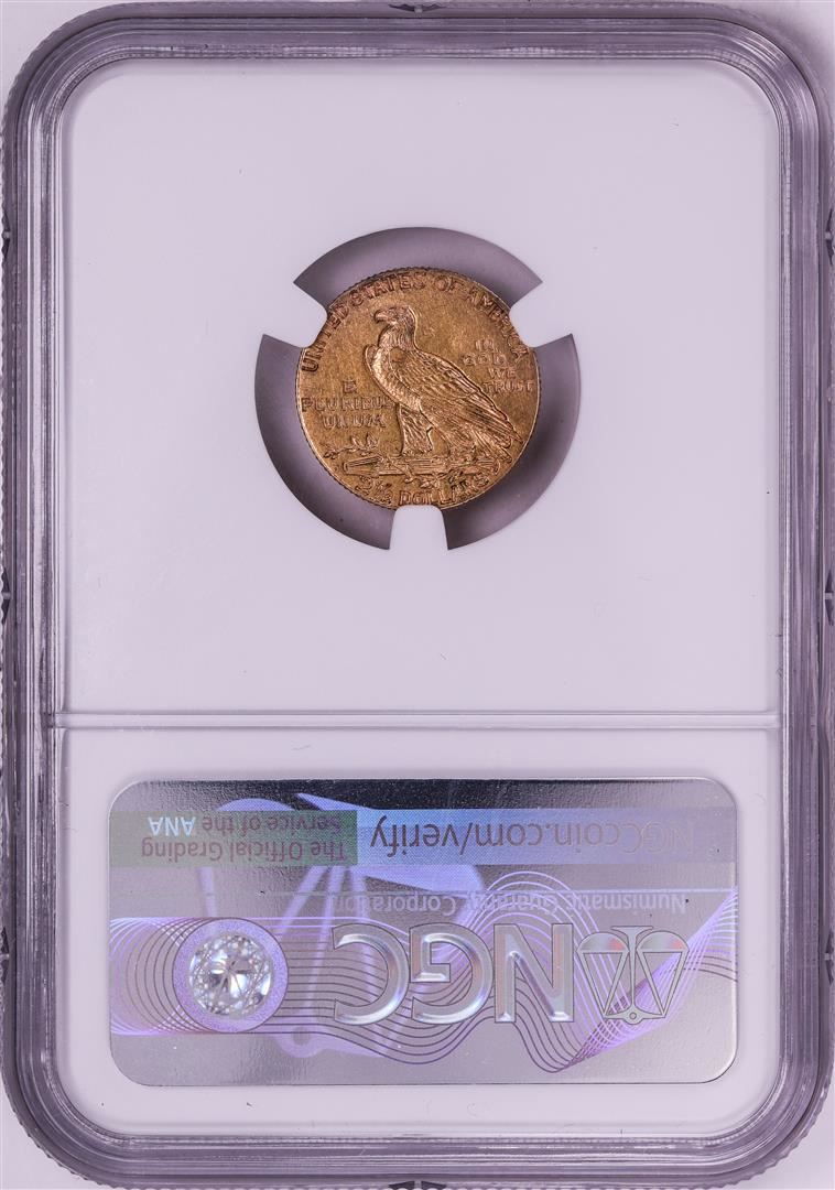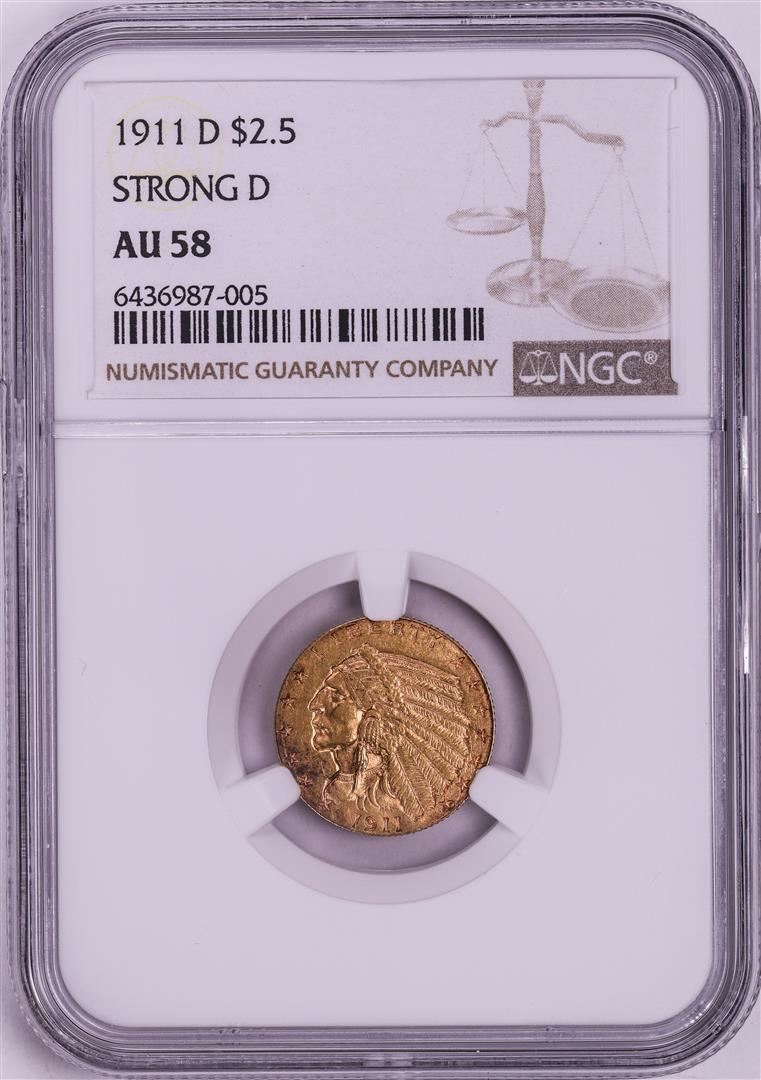 One 1911-D Strong D $2 1/2 Indian Quarter Eagle Gold Coin NGC AU58. NGC Certified.