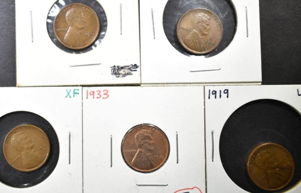 1911-D XF, 12 XF, 15-D XF, 19 BU, 33 BU LINCOLNS