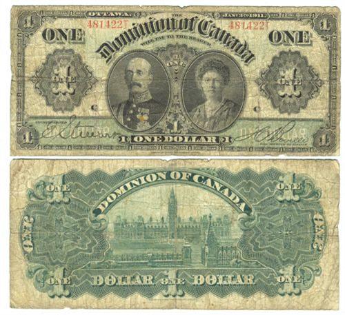Well circulated, heavy folds and creases with light soiling from handling. Minor border tatter. Portrait design of Lord & Lady Grey, Series C Serial #481422T. Boville signature, DC-18a.