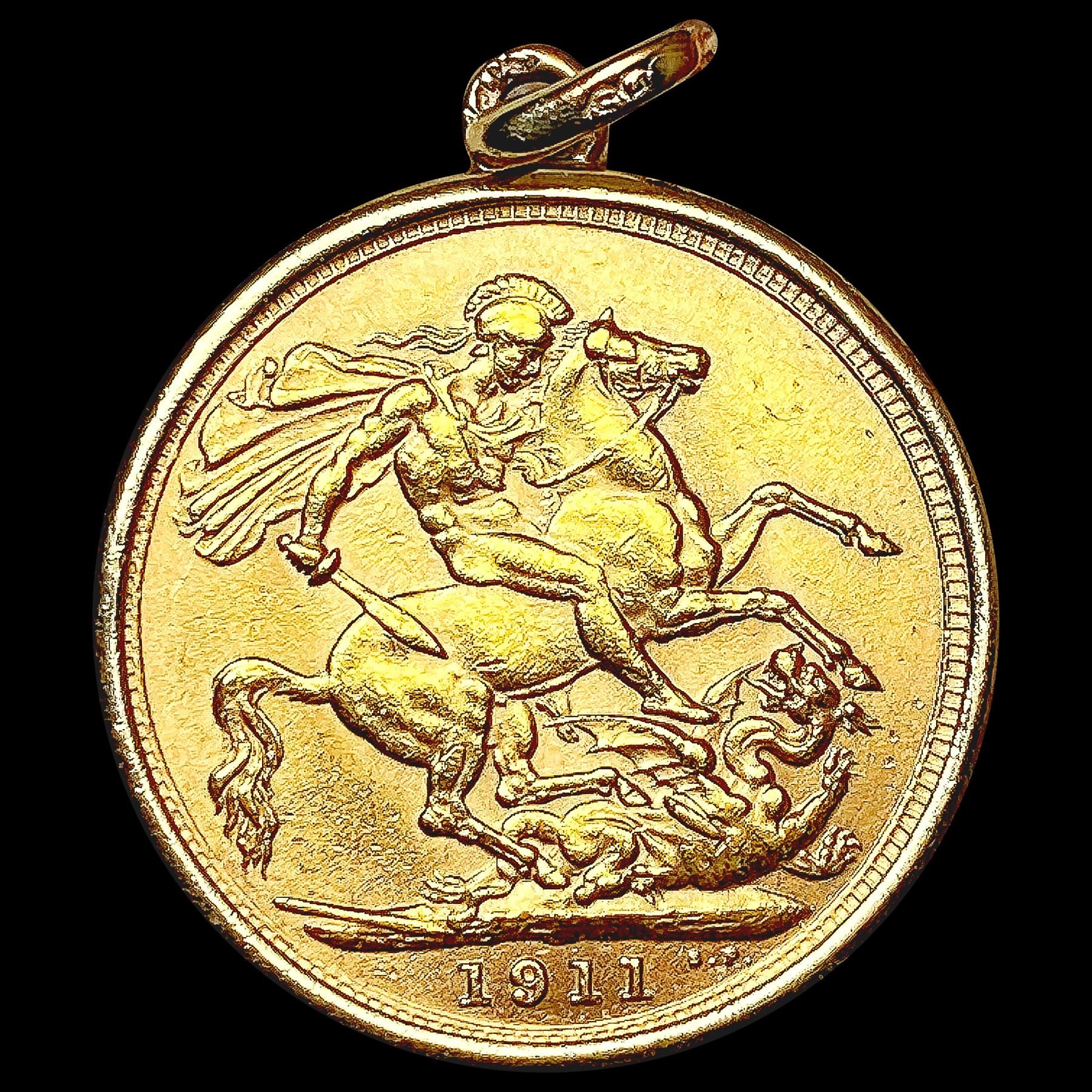 1911 G. Brit .2355oz Gold Sovereign w/ 14K Bezel H