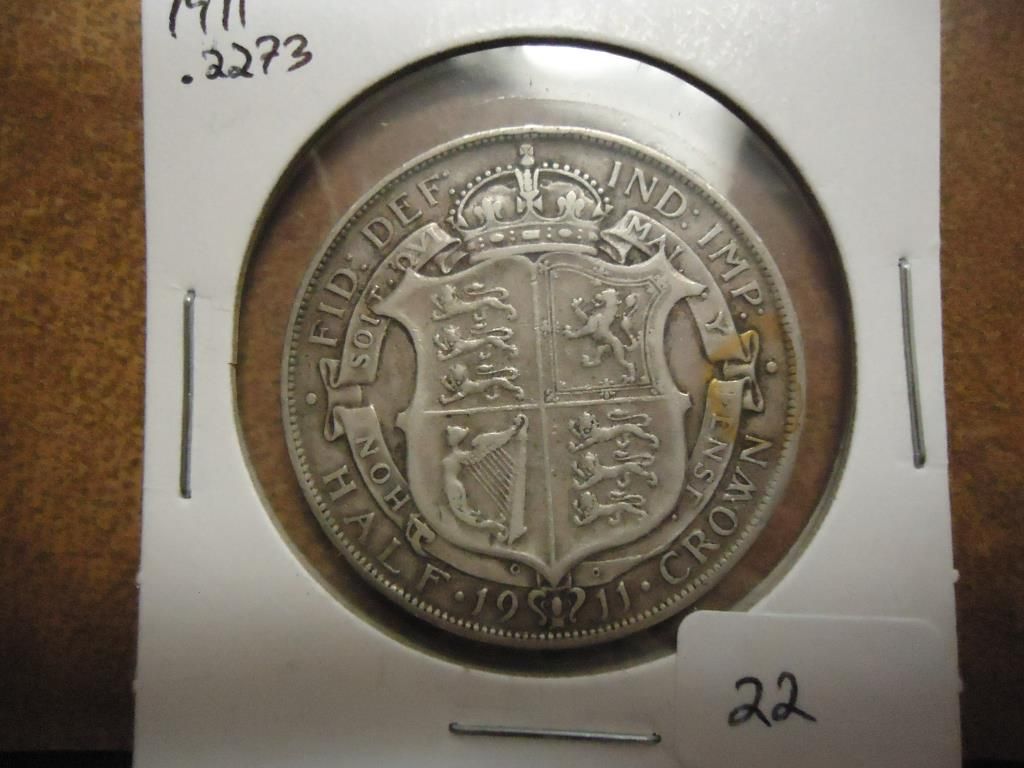 1911 GREAT BRITAIN SILVER HALF CROWN .2273 OZ. ASW