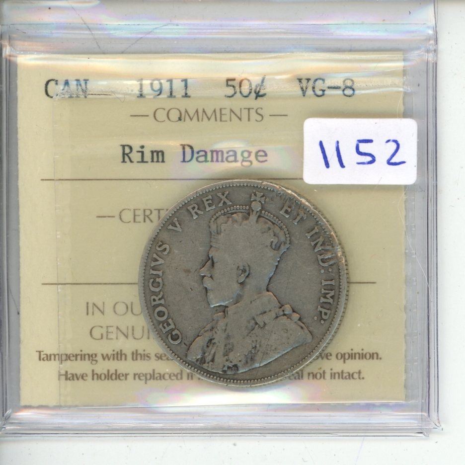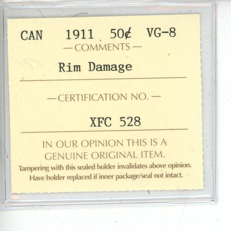 1911 ICCS Graded - Canadian Fifty Cent - VG8