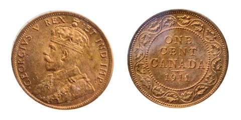 1911. ICCS Mint State-65. Red. 70% remaining red luster.