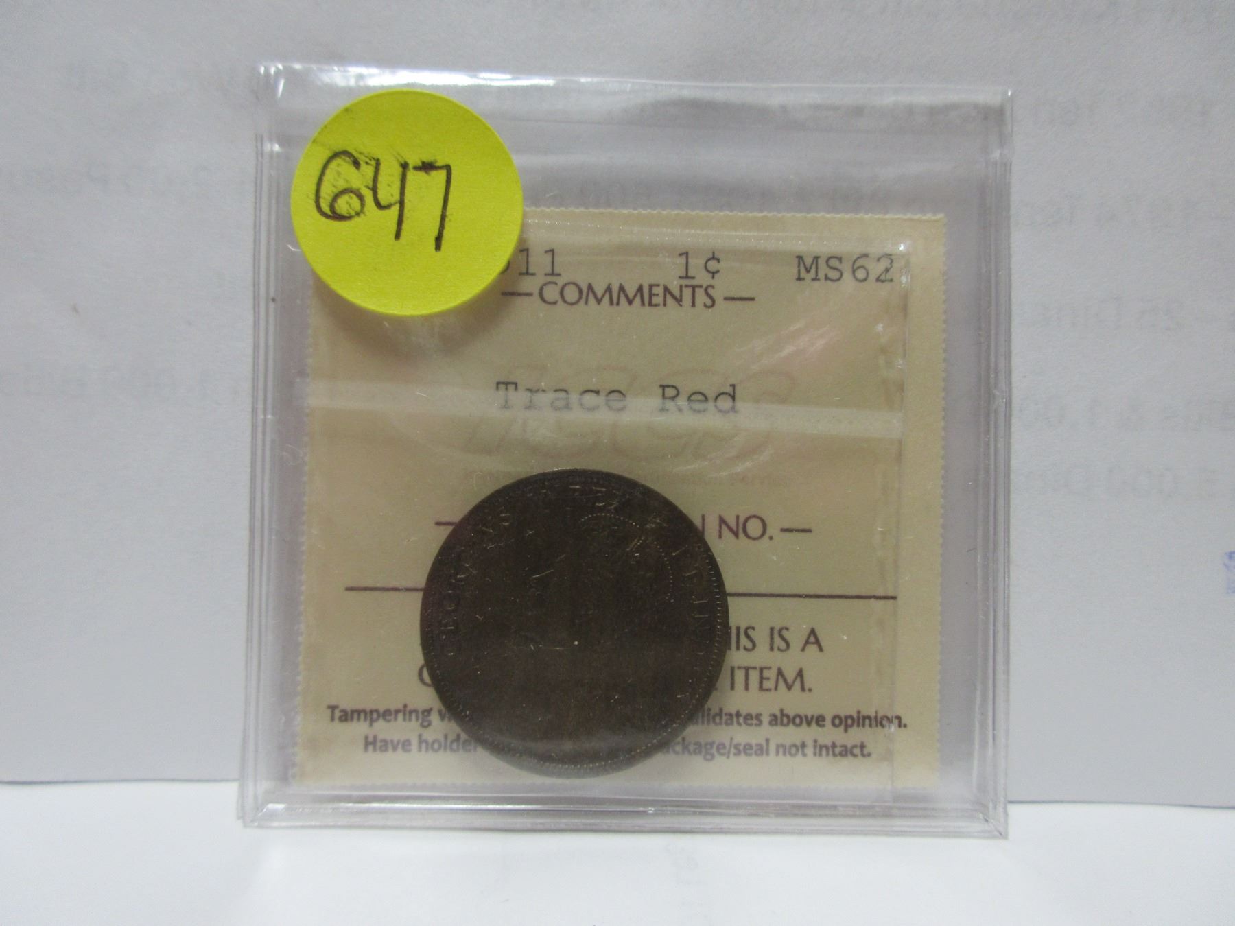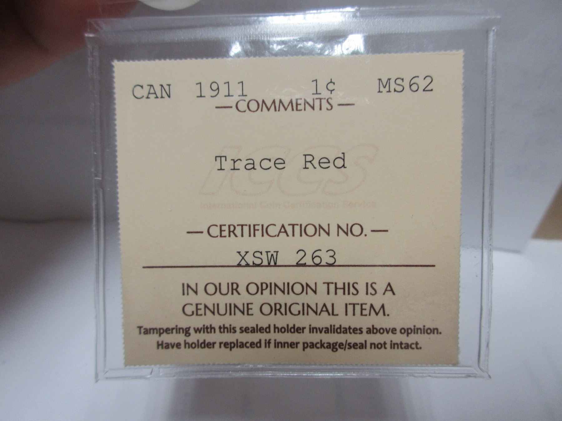 1911 ICCS canadian large cent MS-62 trace red