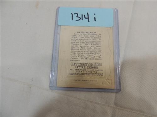 1911 LITTLE CIGARS #T25 ACTOR TRADING CARD DAVID BELASCO. CAUGHT BETWEEN THE ACTS. AS SHOWN. VIEW PICTURE FOR DETAIL.