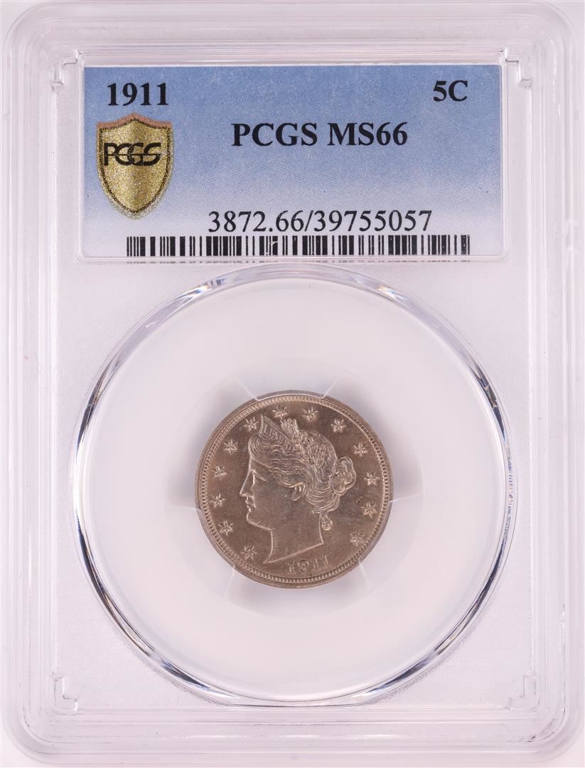 One 1911 Liberty Head V Nickel Coin PCGS MS66. PCGS Graded.