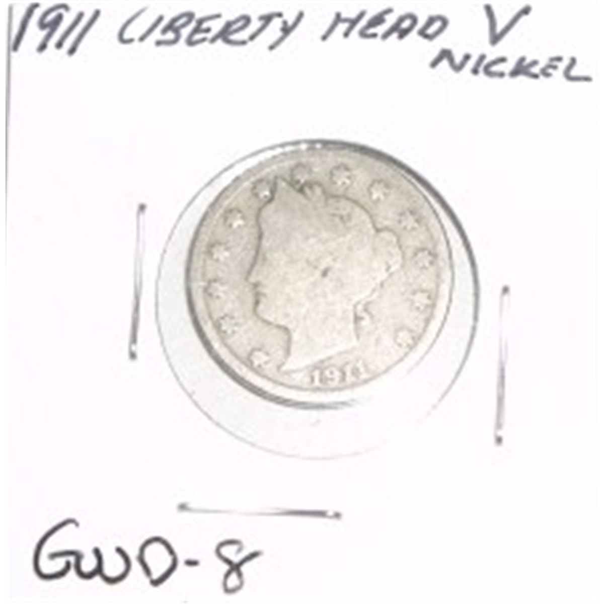1911 Liberty Head "V" Nickel *GOOD-8 CONDITION*!! ***Coin & Currency Grades, Conditions & Values are not Safe Deposit Coins Responsibilty. Grades, Conditions & Values are determined by Consigner(s) & Buyers***