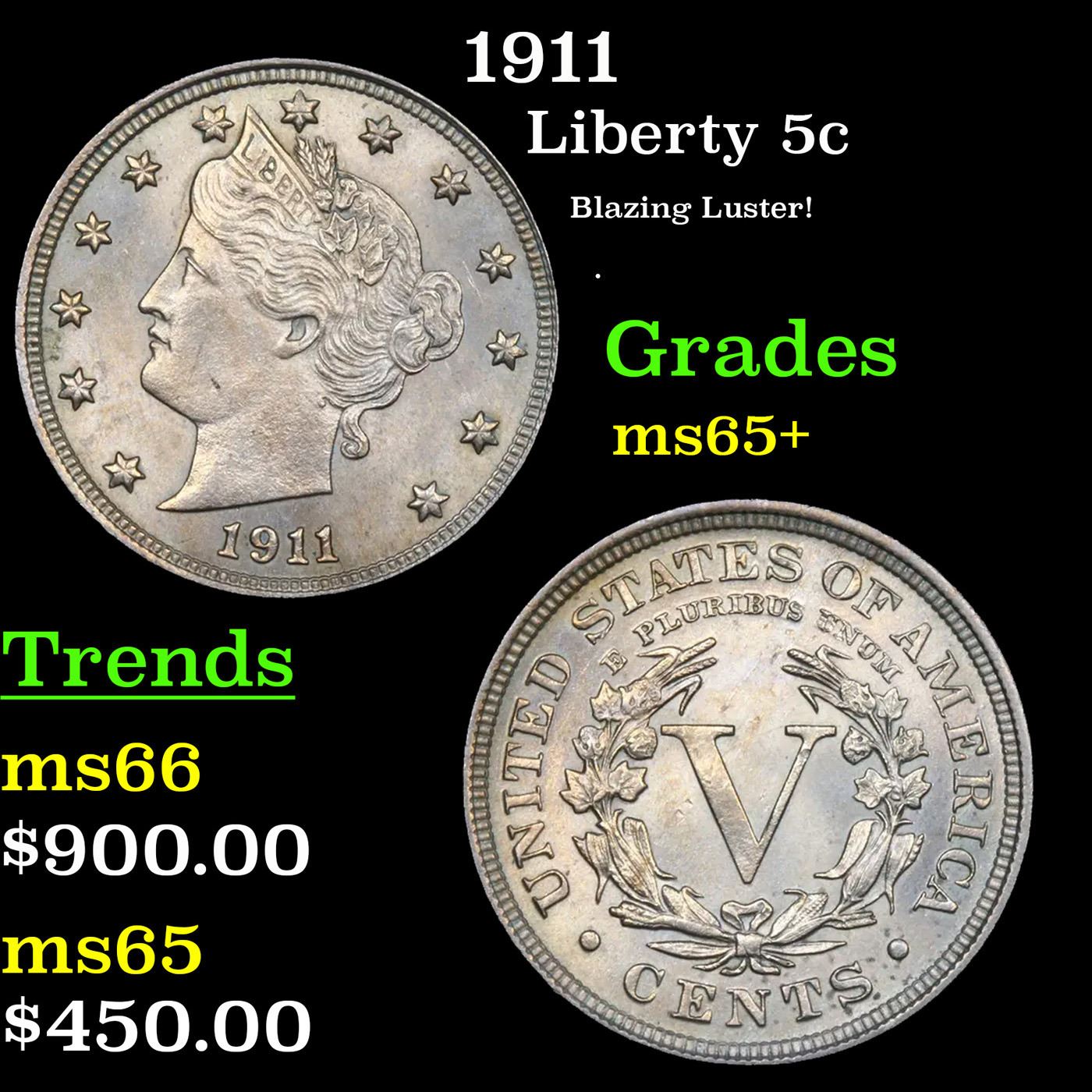 1911 Liberty Nickel 5c Grades GEM+ Unc.