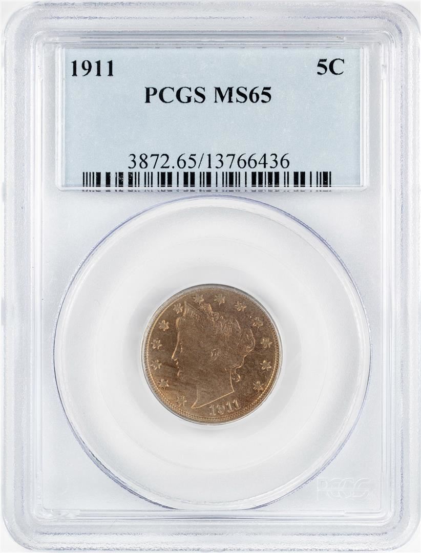 One 1911 Liberty V Nickel Coin PCGS MS65 Nice Toning. PCGS Graded.