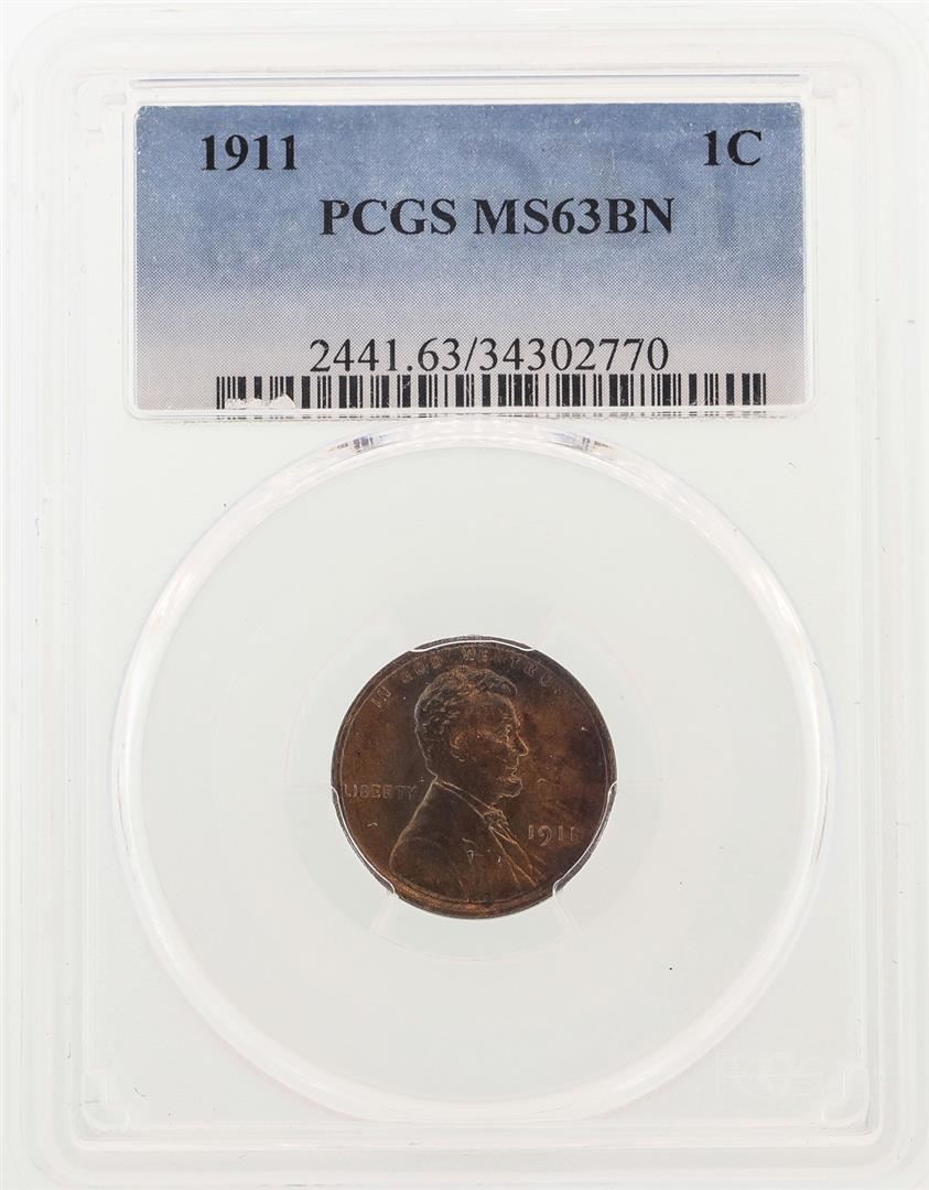 One 1911 Lincoln Wheat Cent Coin PCGS MS63BN. PCGS Graded.