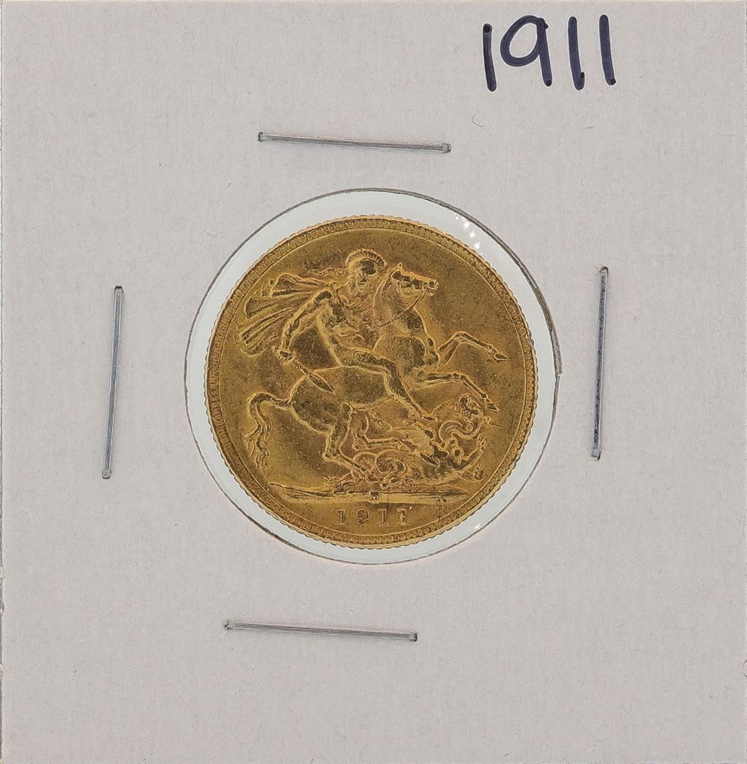 One 1911 Melbourne Australia Sovereign Gold Coin.