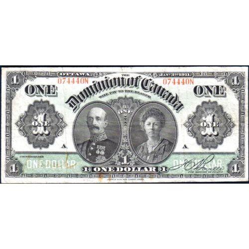 1911 One Dollar, Black Line, Series P, DC-18d, Serial Number 074440N A, VF. There is some staining near the bottom margin
