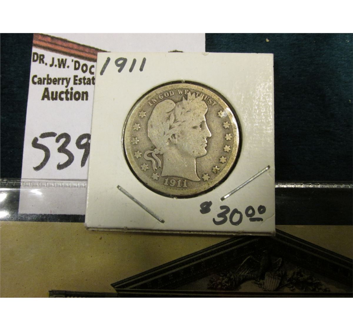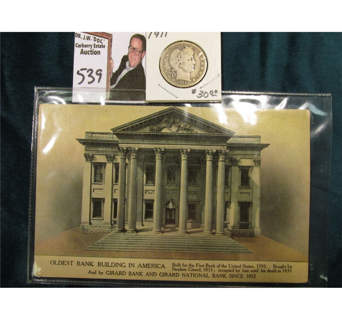 1911 P Barber Quarter, Good; & Post card "Oldest Bank Building in America Built for the First Bank of the United States, 1795…".