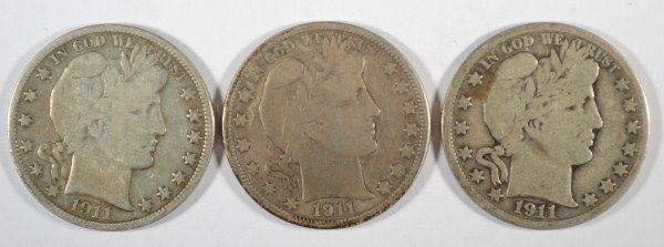 1911 P, D, S BARBER HALF DOLLARS VG-F