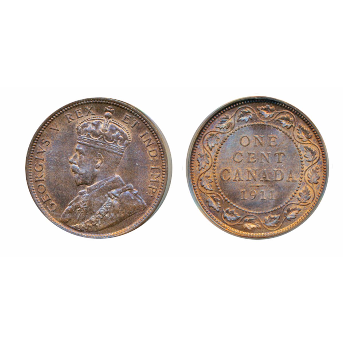 1911. PCGS graded Mint State-66. Red-Brown. 40% red luster. A Gem large cent.